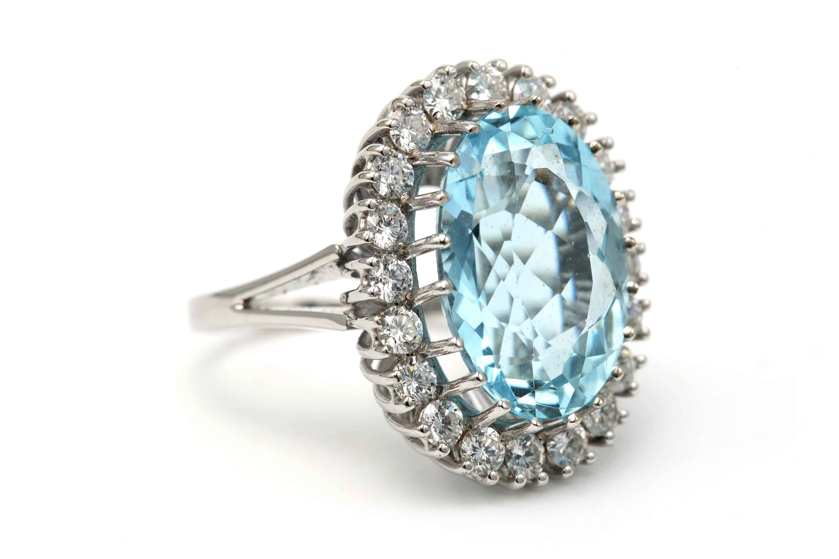 - 17,37 x 12,43 mm (aigue-marine) ; 2,85 mm (diamants)