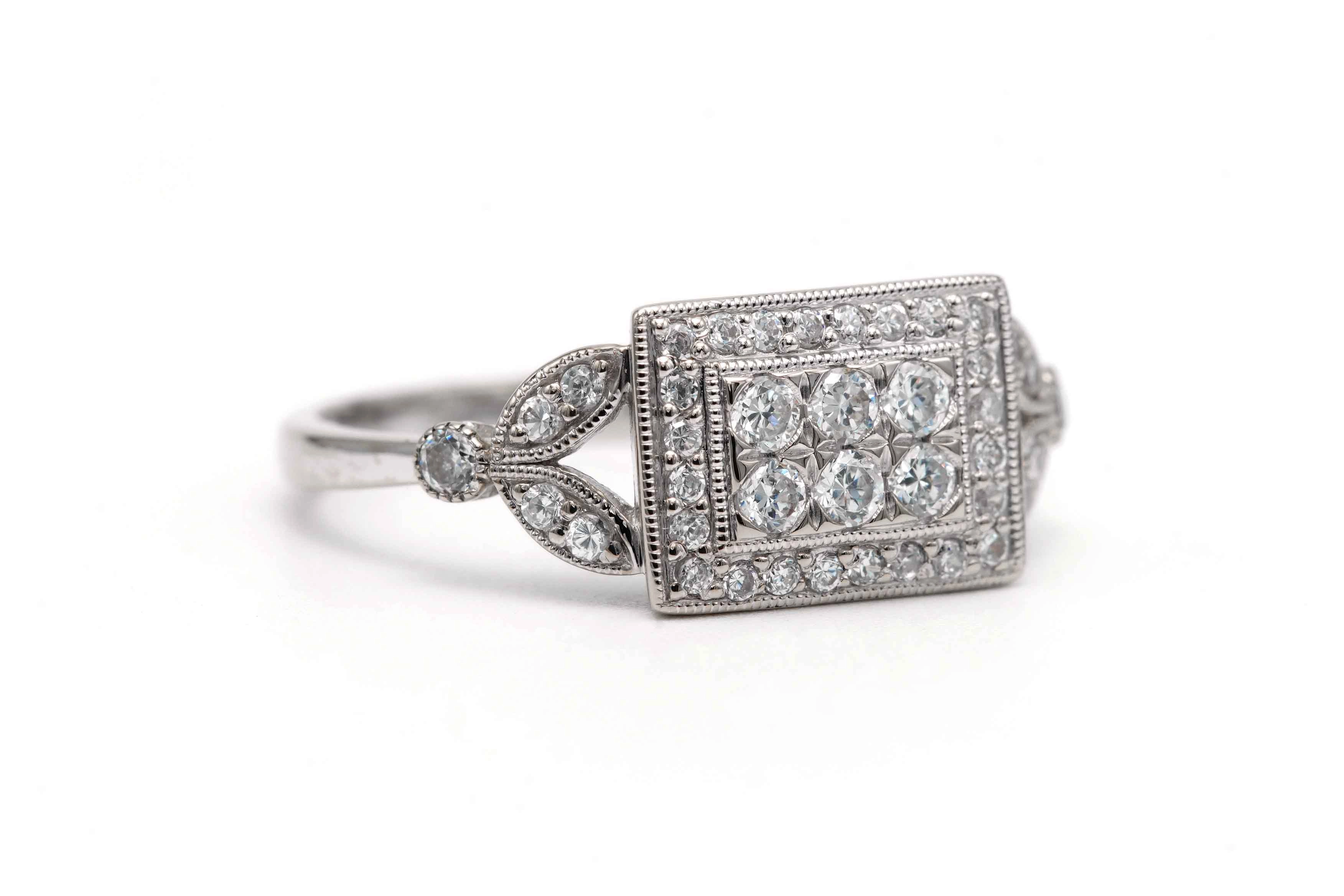 Bague contemporaine en or blanc 18 carats sertie de zirconiums