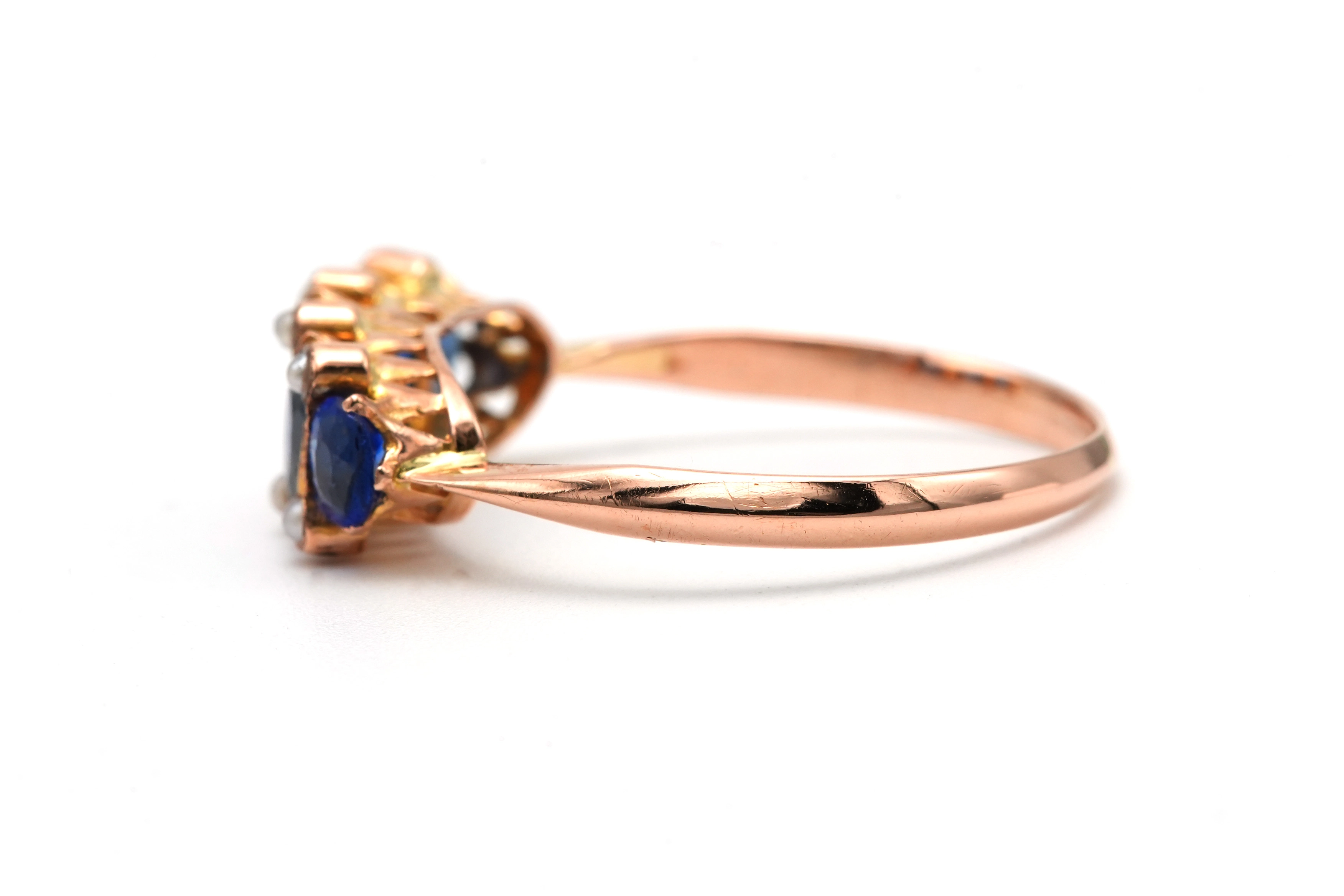 Bague Art Déco en or jaune 18 carats sertie de saphirs et de perles