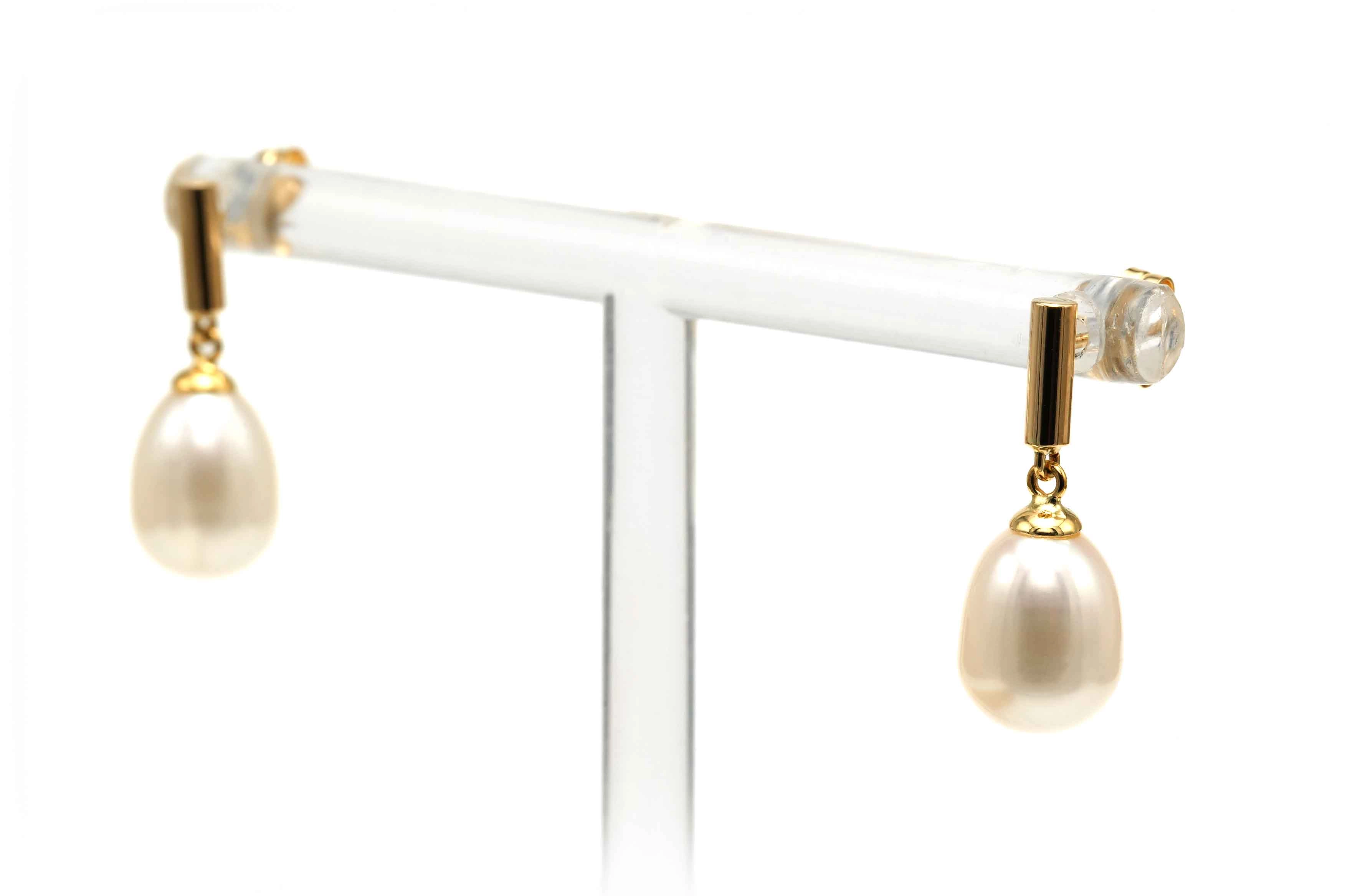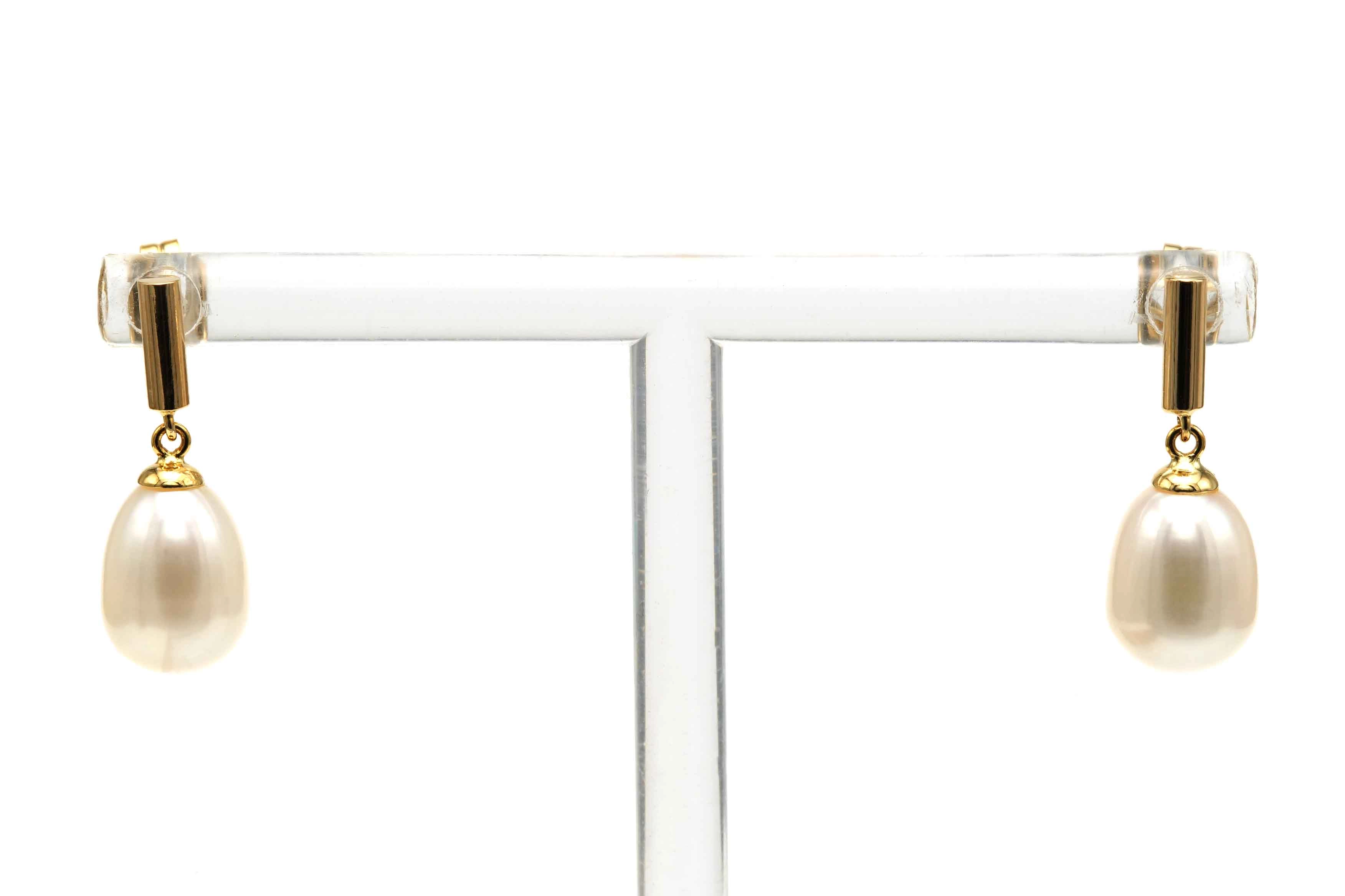 Boucles d'oreilles contemporaines en or jaune 18 carats serties de perles