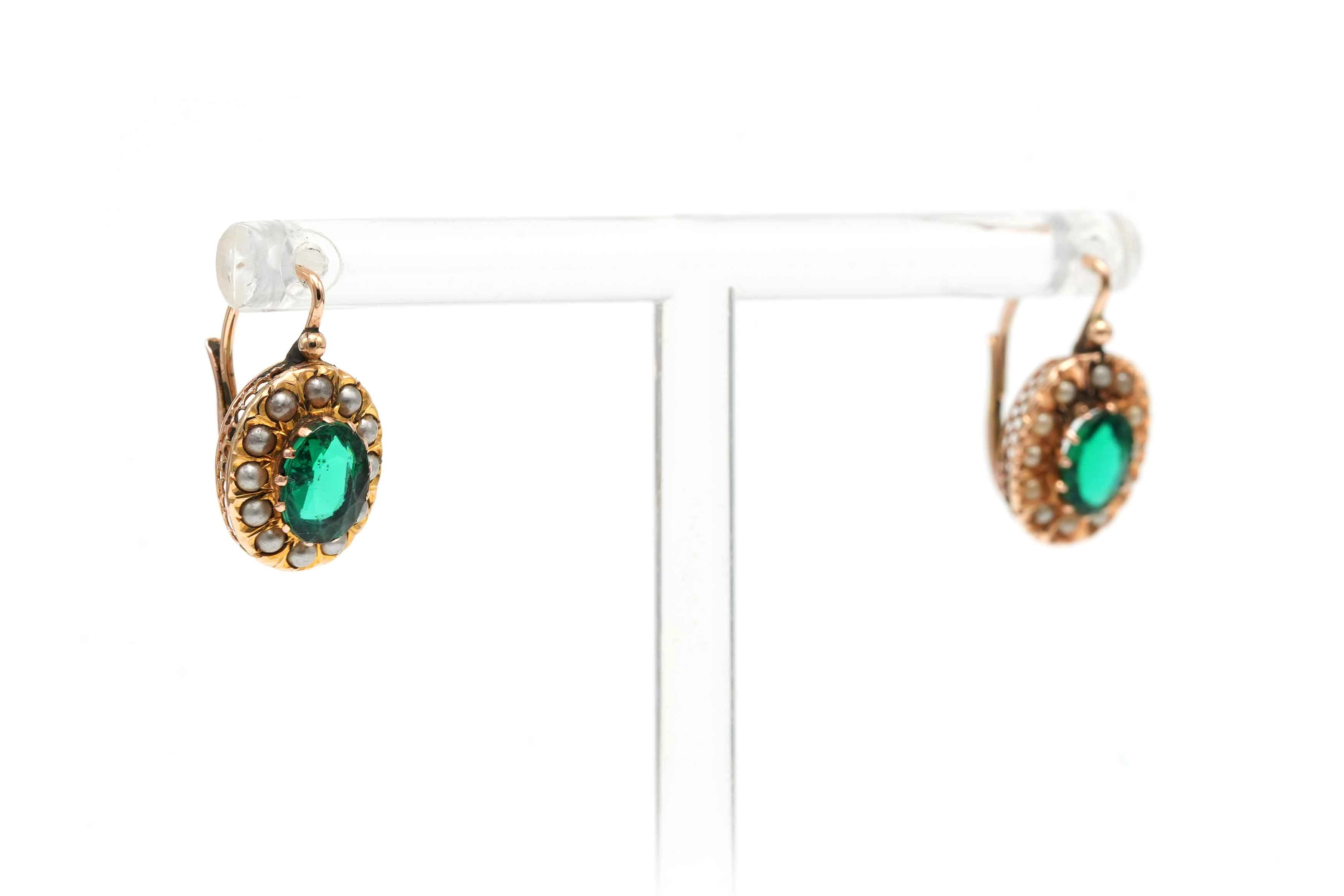 Boucles d'oreilles Napoléon III en or jaune 18 carats serties de perles et de cristal